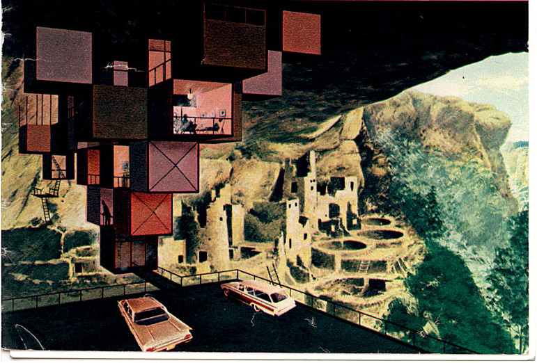 “Charles Harper painted homes designed by Rudy Hermes as photomontage backdrops to introduce the 1960 Fords in November 1959's Ford Times magazine... ‘the ultimate in prefabrication since it has no footings or foundation.’”—Dwell
